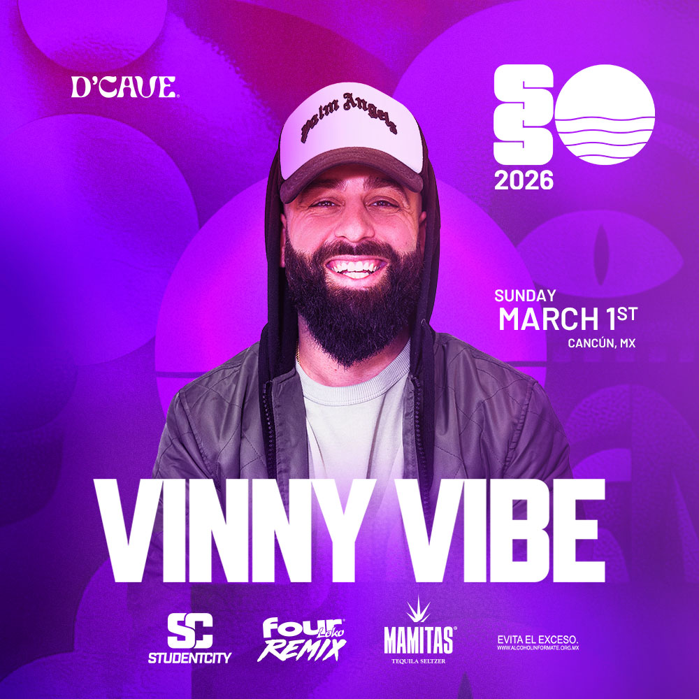 Known for his infectious grooves and dynamic DJ sets, Vinny Vibe takes control of D’Cave, Cancun’s underground nightlife hotspot. Expect a night driven by rhythm, bass, and pure club energy. With a sound designed to keep the dancefloor moving nonstop, Vinny Vibe delivers an immersive experience built for true nightlife lovers.