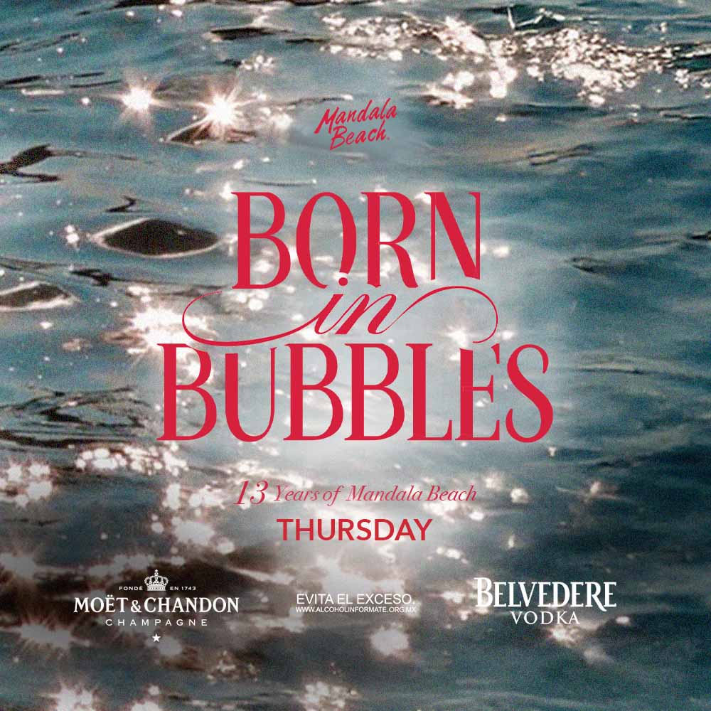 Mandala Beach Day invites you to dive into an afternoon where the ocean, sun, and champagne come together to create a unique atmosphere. Enjoy immersive music, a vibrant crowd, and an energy you’ll only find at one of Cancun’s most iconic beach clubs.
