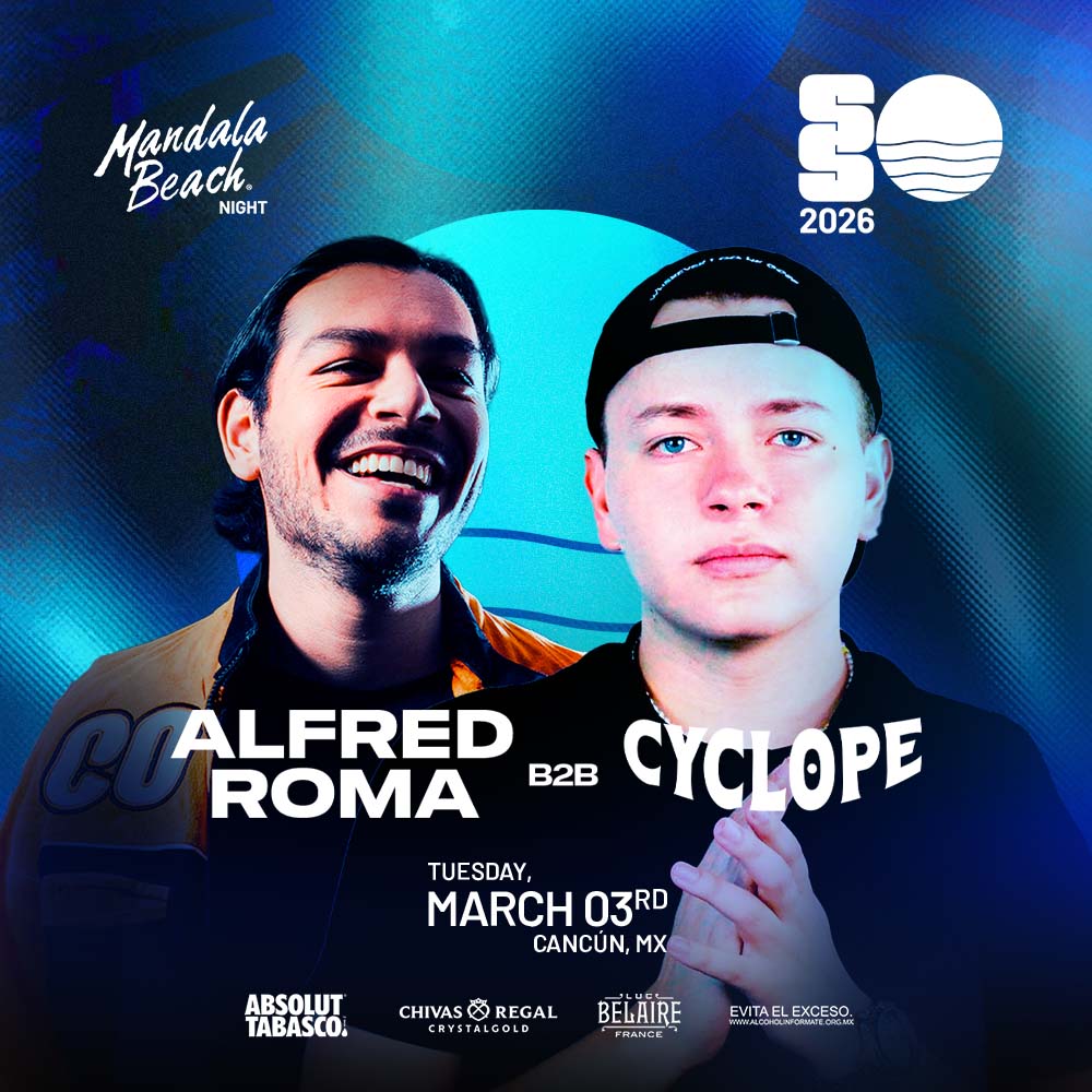 Get ready for a powerful night session by the beach. This March 3rd, Mandala Beach Night sets the stage for an electrifying experience as Alfred Roma and Cyclope go back-to-back for a high-energy DJ set in the heart of Cancun’s nightlife.