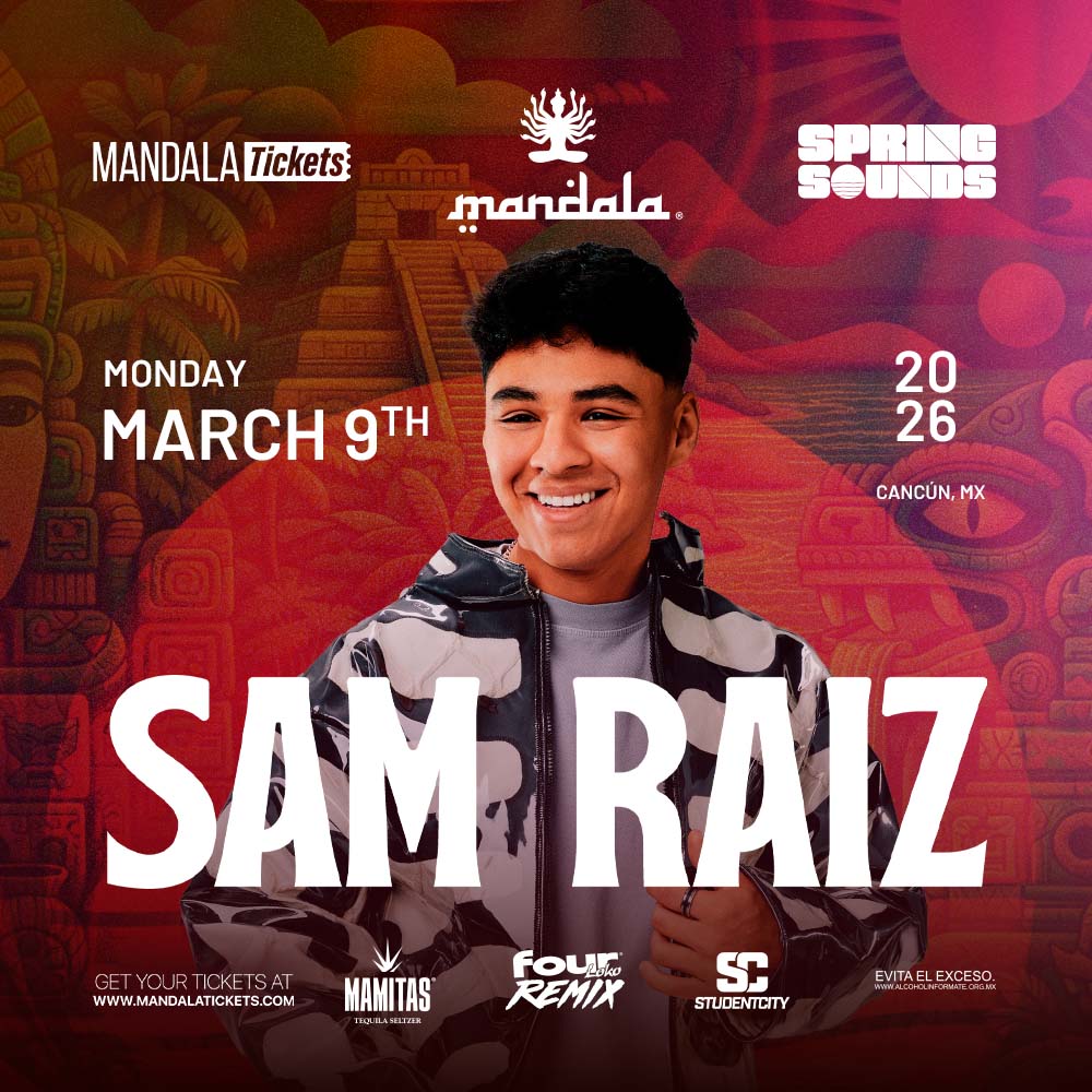 Known for his dynamic sets and crowd-hyping energy, SAM RAIZ brings a powerful mix of electronic beats and party anthems to Mandala, one of Cancun’s most iconic nightclubs. His sound is designed to keep the dancefloor packed and the energy at its peak all night long. Expect an immersive nightlife experience where music, visuals, and the vibrant crowd come together for an unforgettable party.