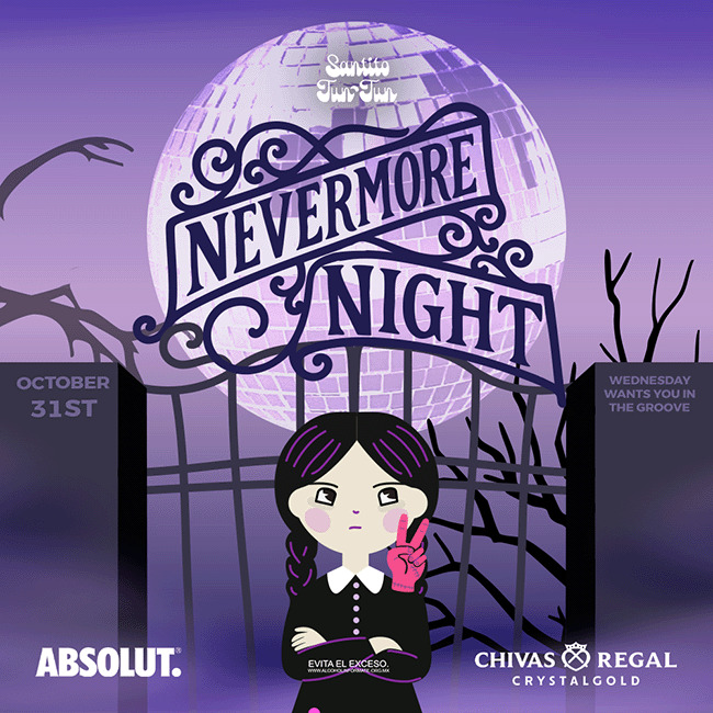 On October 31st, 2025, Santito Tun Tun Cancun brings you a Halloween filled with gothic vibes and dark fun at Nevermore Night. Inspired by Wednesday Addams’ eerie style, this special night promises an unforgettable experience where music, mystery, and irreverence take over the dance floor.