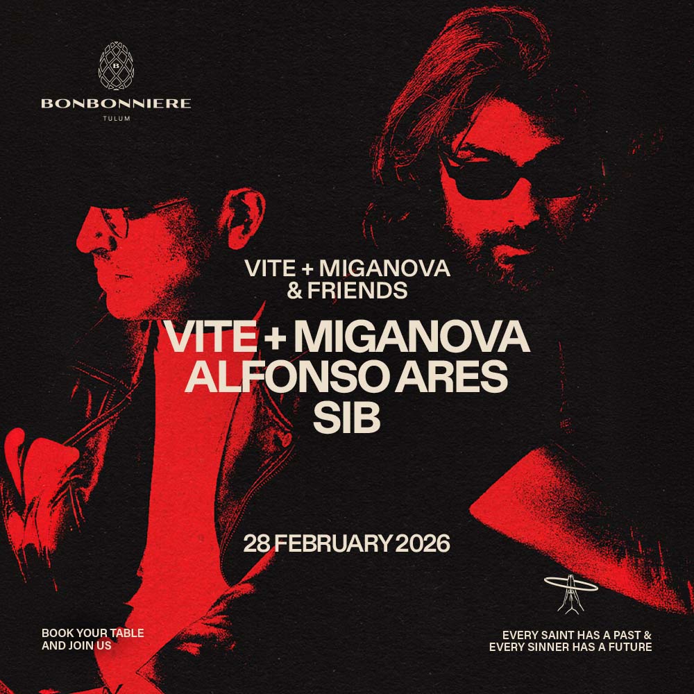 On February 28th, experience SINNER at Bonbonniere Tulum, one of the most exclusive electronic music parties in Tulum. Enjoy an unforgettable night with Vite + Miganova, Alfonso Ares, and SIB at the iconic club located in the hotel zone.