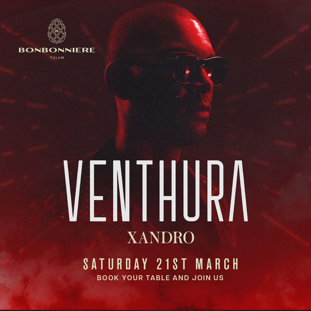 Bonbonniere Tulum presents an immersive electronic experience on March 21st, 2026, featuring Venthura as the main DJ. Recognized for his deep melodic house sound and atmospheric electronic sets, Venthura delivers a refined musical journey built on progressive rhythms, hypnotic synth layers, and elegant transitions that elevate the dance floor.
