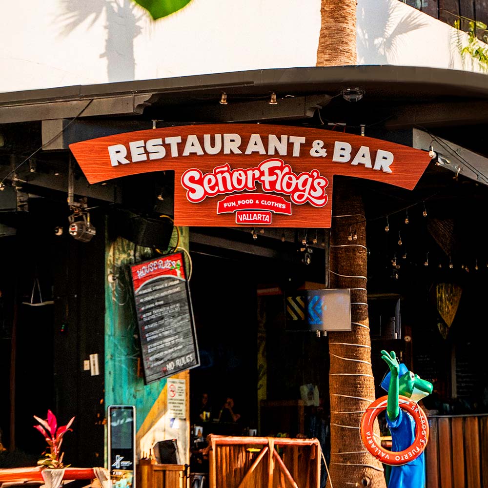 Señor Frog’s Restaurant en Puerto Vallarta. Adéntrate en una noche llena de energía vibrante y entretenimiento animado. Deléitate con nuestros exquisitos platillos y saborea los sabores únicos que hacen de