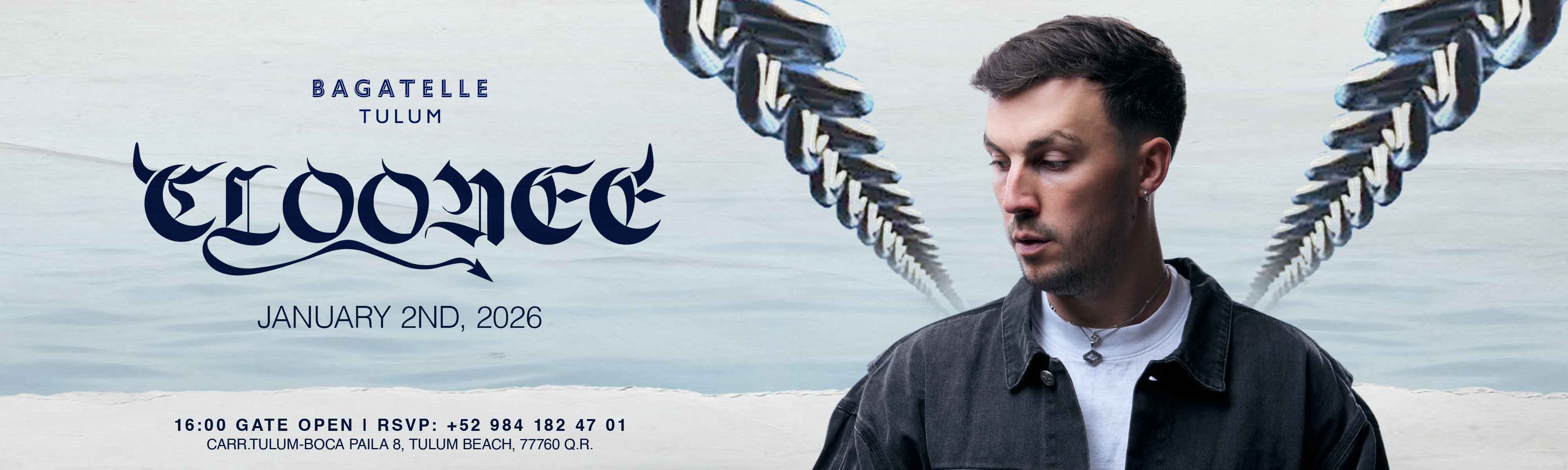 Quando o sol se põe sobre a costa turquesa de Tulum, o Bagatelle se transforma em um refúgio de som e elegância. Junte-se a Disco Dom para uma tarde de ritmo, brilho e sofisticação. Sua fusão única de house com toques disco vai aquecer o ambiente enquanto a multidão dança sob a luz dourada do Caribe. Brinde com champanhe, dance descalço na areia e sinta a energia glamourosa do Bagatelle elevar você. Isso é mais do que música — é uma celebração da liberdade, do luxo e da pura alegria de viver à beira-mar.