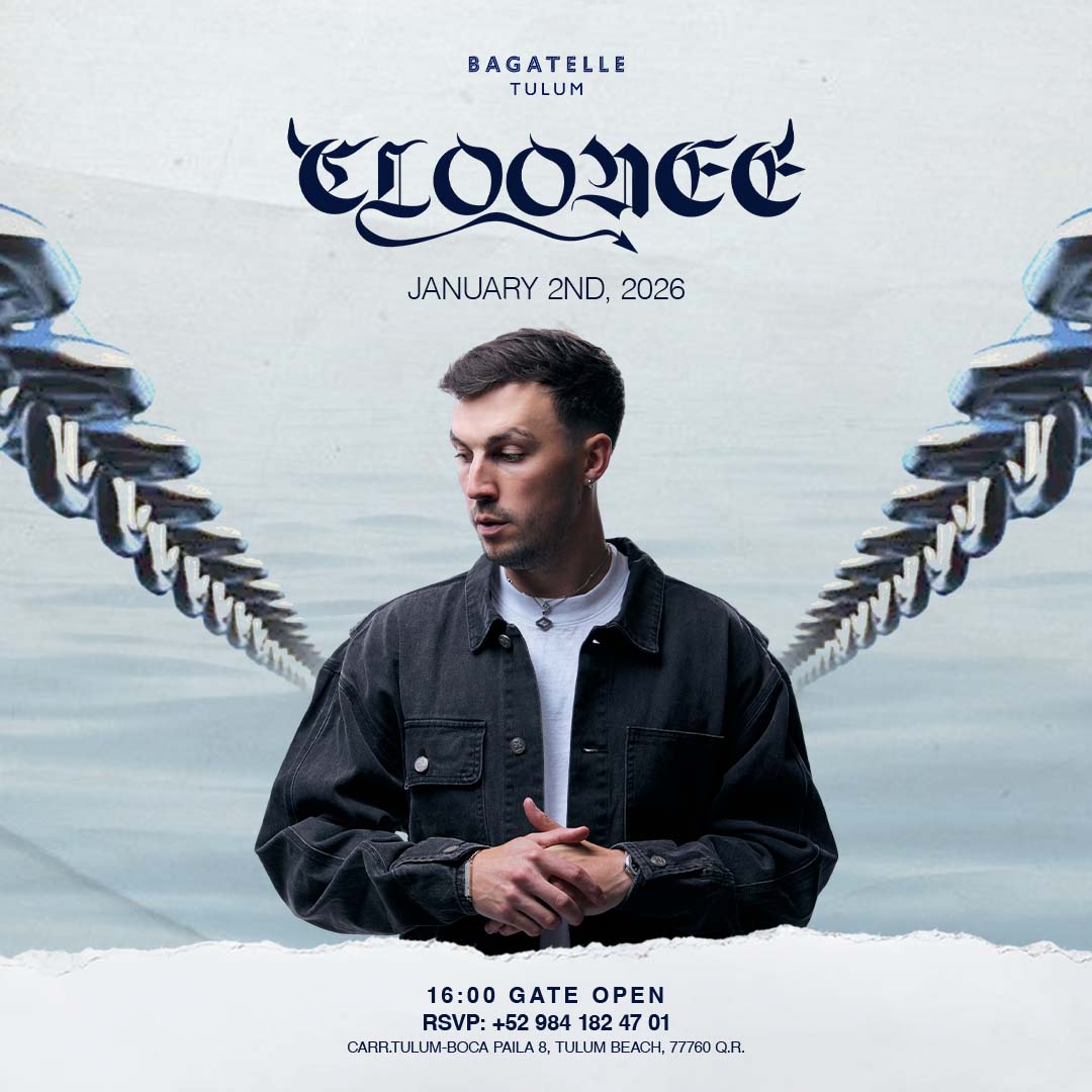 Não perca um dos eventos mais aguardados do início da temporada de 2026 em Tulum. Garanta seu acesso ao Bagatelle Tulum, aproveite uma atmosfera exclusiva e deixe-se levar pelo som de Cloonee, em uma experiência que traduz a verdadeira essência da música e do lifestyle de Tulum.